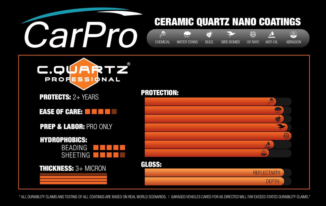 Not only are CQuartz coatings leading the industry with constant advances, but no other company takes as much pride and care with every installer application they review! Thousands of detailers in North America apply to become CQuartz Professionals and only a select few are approved because of the standards for quality of work and integrity that CarPro demands from each installer.